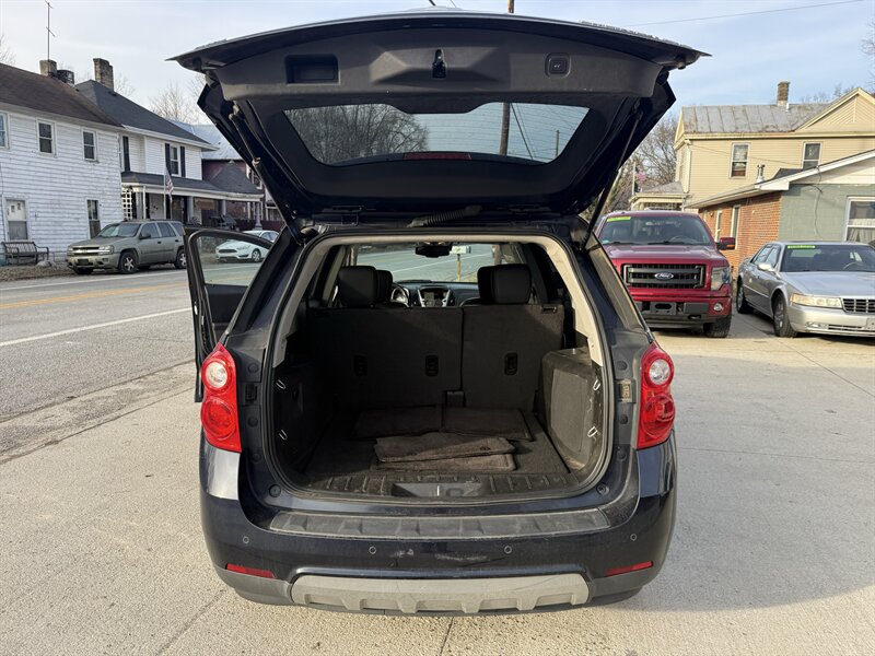 2015 Chevrolet Equinox LTZ powered by a 2.4L I4 (182 hp, 172 lb-ft). Exterior is Blue with Black leather interior; vehicle is in excellent overall condition and EPA-rated at 20 MPG city / 29 MPG highway. Factory equipment includes leather-appointed seating with heated front seats and power-adjustable driver seat with lumbar, dual-zone automatic climate control, chrome exterior trim, roof rails, fog lamps and alloy wheels, plus power windows/locks/mirrors and remote keyless entry. Factory infotainment and safety features include Chevrolet MyLink touchscreen with Bluetooth and USB/Aux inputs, premium Bose audio, rearview camera, ABS, stability/traction control, multiple airbags and tire pressure monitoring.